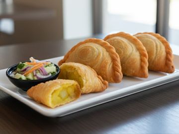 Pastry filled with potato, carrot, onion and touch of curry.