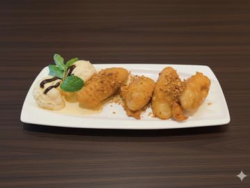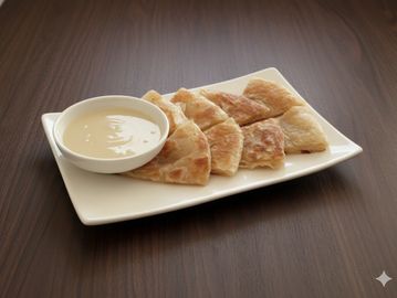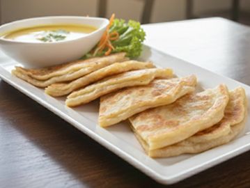 Thai pancake served with mild yellow curry sauce.