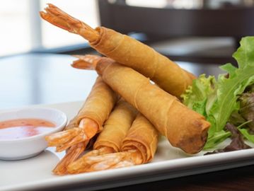 Crispy vegetarian rolls.