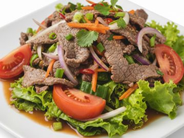 Roasted beef tossed with onion, chili, cucumber, tomato in chili lime dressing.