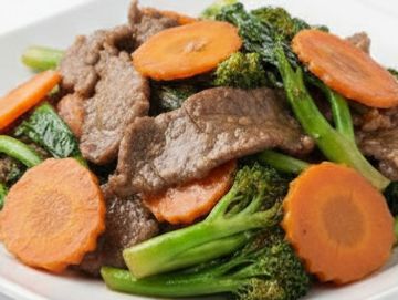 Sautéed Chinese broccoli or broccoli and carrot in garlic sauce.