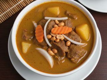 Mild coconut based peanut curry with potato, onion and carrot.
