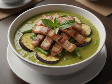 BBQ Pork, green bean, bell pepper, eggplant and basil in Green Curry.