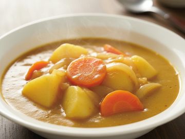 Mild yellow curry with potato, onion and carrot.