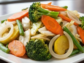 Sautéed mixed vegetables in garlic sauce.