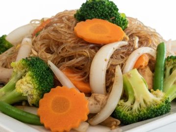 Choice of Rice noodle / Egg noodle. Served with Chinese broccoli & bean sprout
